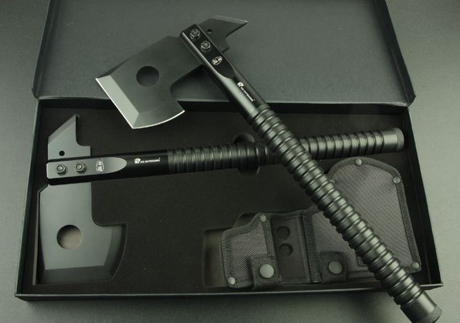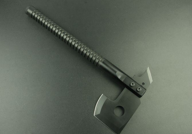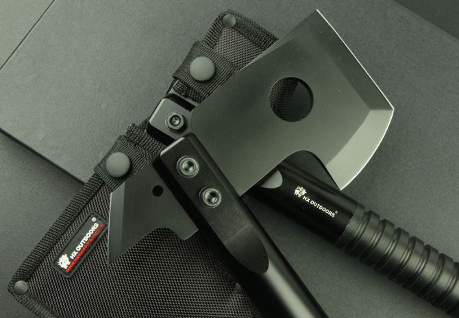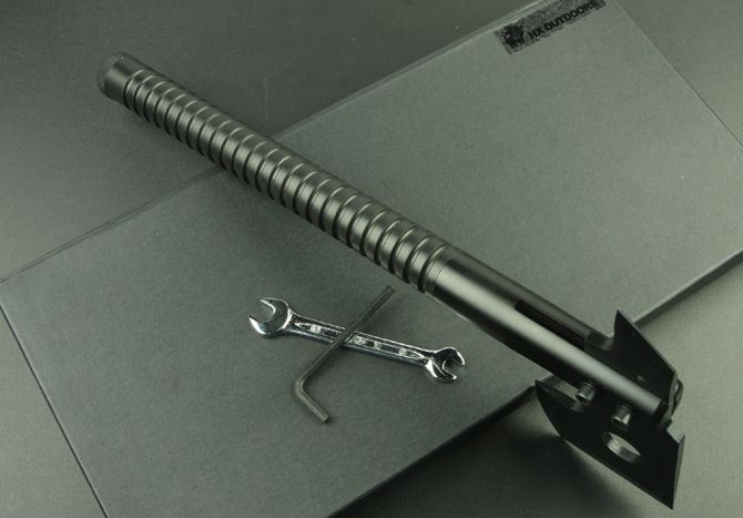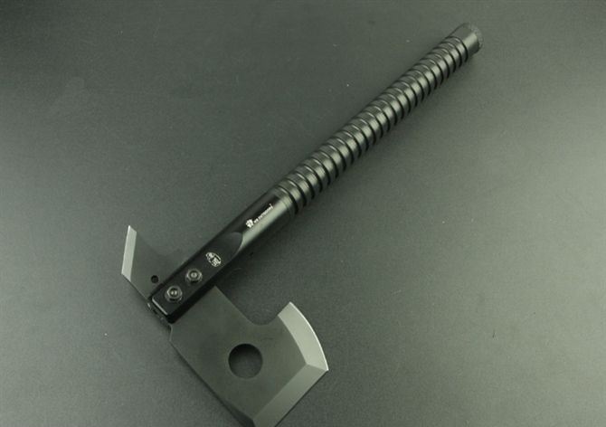 汉道—配工具两用斧 全 长:41cm 刃 长: 8cm 柄 长: 36.4cm 斧 宽: 10.5cm 斧 厚:0.6cm 硬 度: 58-60HRC 重 量: 930g(含套) 刃 材: 5Cr13Mov 表 面: 氧化黑 刀 套: 尼龙套 包 装:原品包装 柄 材: 高抗冲击性玻纤塑胶