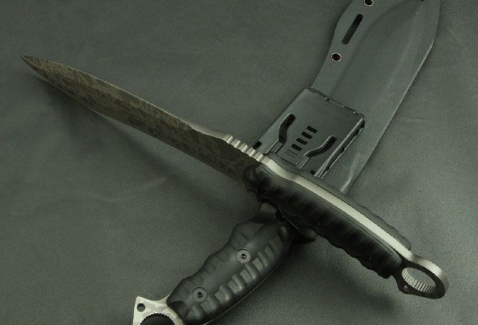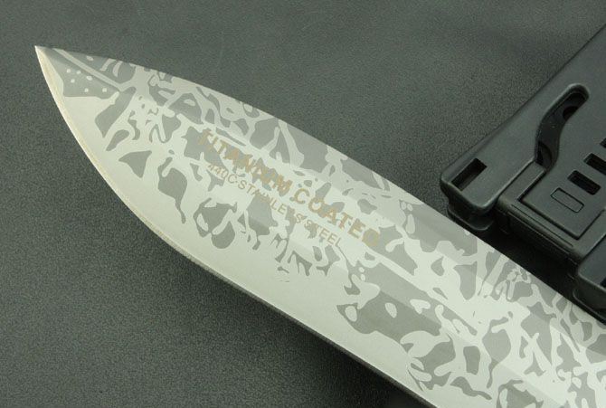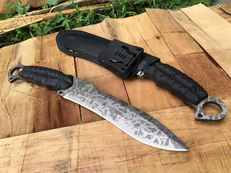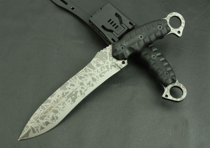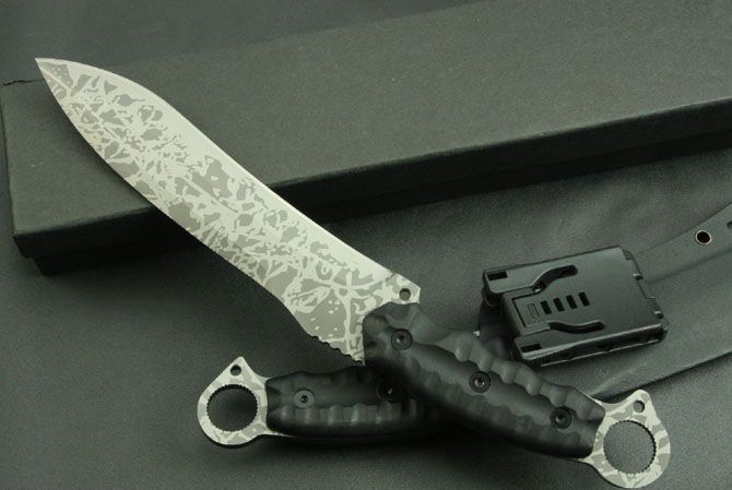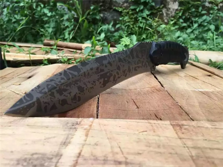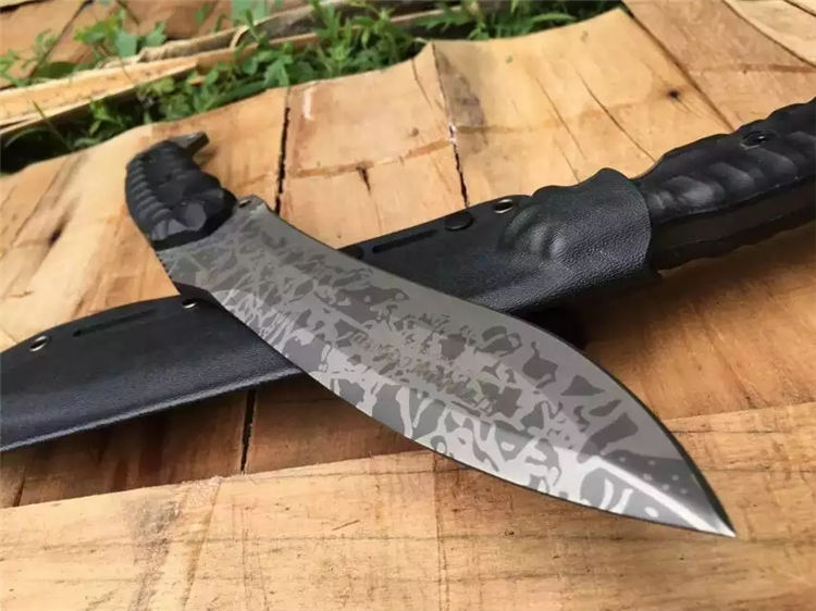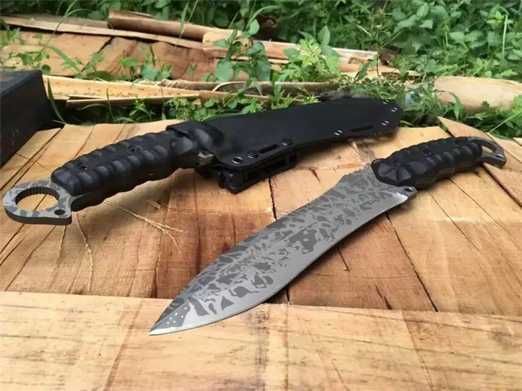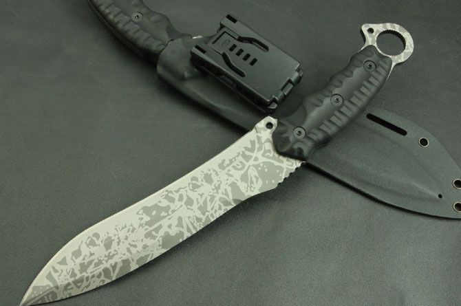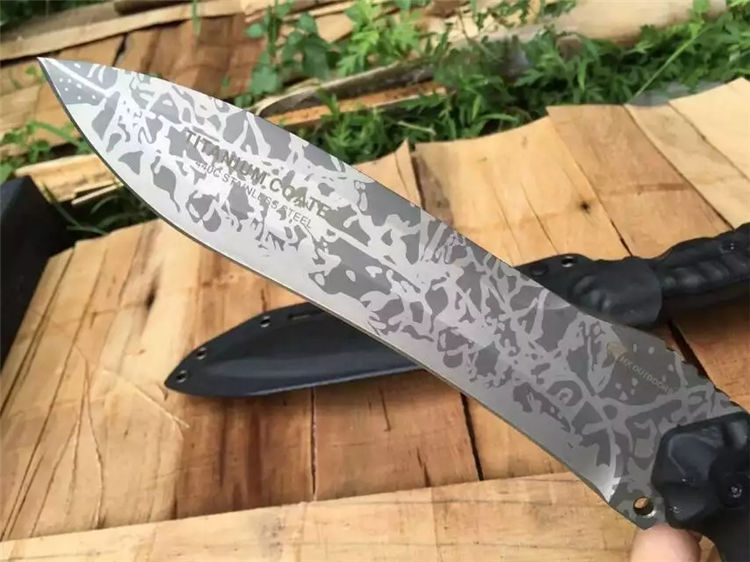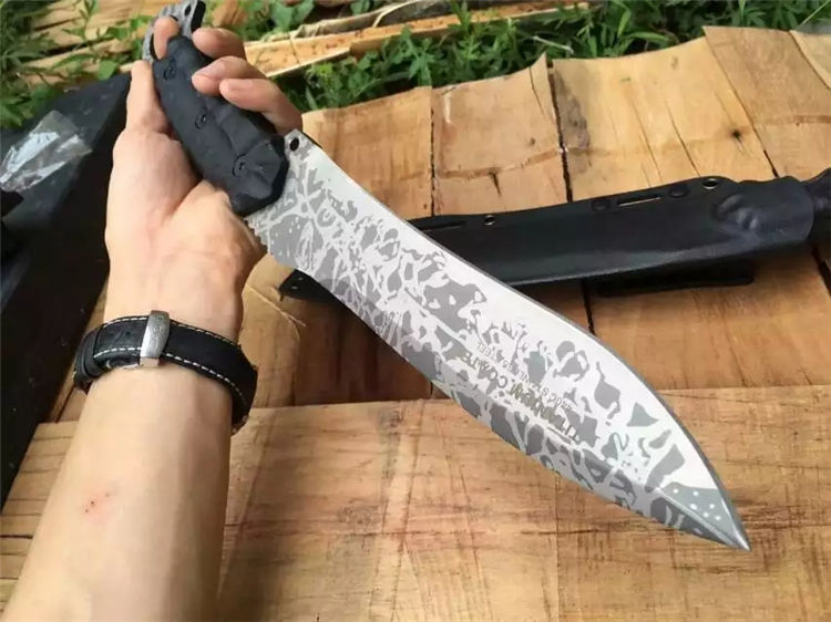 全 长:350mm 刃 长:200mm 柄 长:145mm 刃 宽:42mm 刃 厚:6mm 刃 材:5Cr13Mov 重 量:640g(含包装) 硬 度:57HRC 表 面:二次氧化 柄 材:尼龙纤维 锁 型:定锁 其 他:配牛皮套和黑色硬纸盒