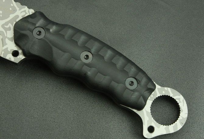 汉道刺客2号直刀 全 长:350mm 刃 长:200mm 柄 长:145mm 刃 宽:42mm 刃 厚:6mm 刃 材:5Cr13Mov 重 量:640g(含包装) 硬 度:57HRC 表 面:二次氧化 柄 材:尼龙纤维 锁 型:定锁 其 他:配牛皮套和黑色硬纸盒