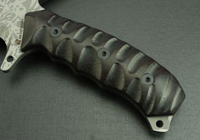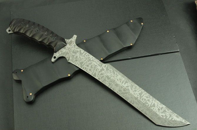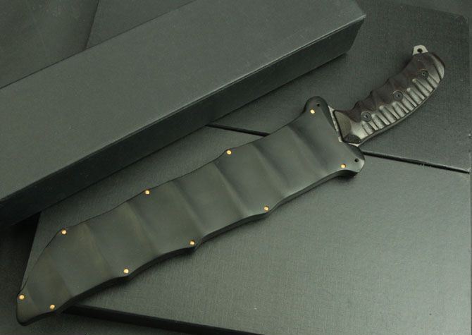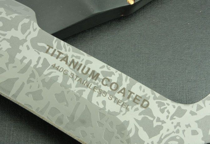 全 长:445mm 刃 长:280mm 柄 长:140mm 刃 宽:44mm 刃 厚:5.9mm 刃 材:5Cr13Mov 重 量:960g(含包装) 硬 度:57HRC 表 面:腐蚀 柄 材:黑檀木 锁 型:定锁 其 他:配彩木刀套和黑色硬纸盒