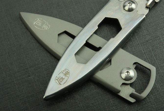 汉道钥匙刀(白色、黑色、灰色) 全 长:115mm 刃 长:45mm 柄 长:72mm 刃 宽:17mm 刃 厚:1.5mm 刃 材:5Cr13Mov 重 量:28g(含包装) 硬 度:56HRC 表 面:白色,黑色,灰色 柄 材:全钢 锁 型:弹力 其 他:插卡