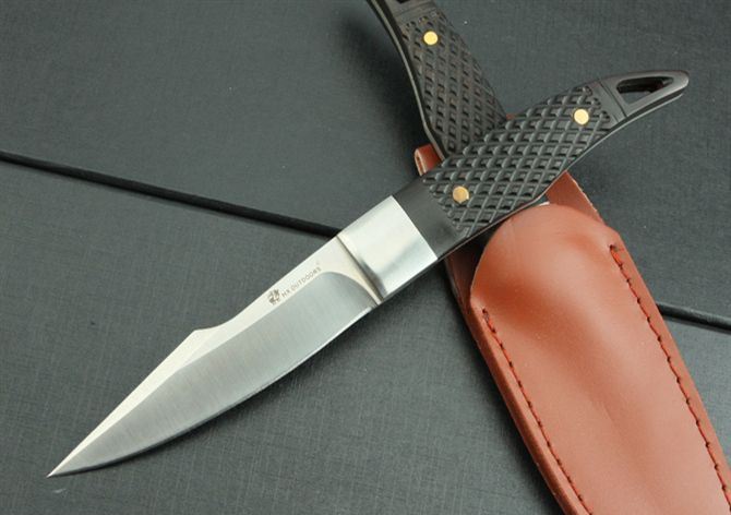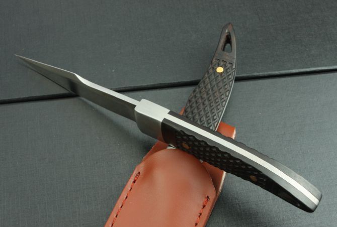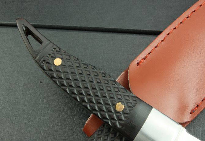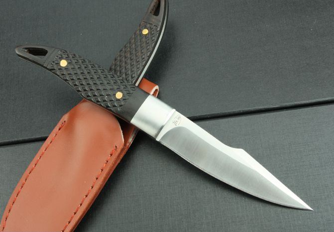 全 长:225mm 刃 长:103mm 柄 长:117mm 刃 宽:27mm 刃 厚:3.3mm 刃 材:5Cr13 重 量:170g(含皮套) 硬 度:57HRC 表 面:砂光 柄 材:黑檀木 锁 型:定锁 其 他:配彩盒和皮套