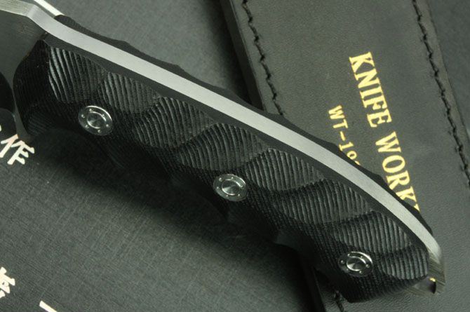 刀工1987-2号经典直刀 全 长:330mm 刃 长:220mm 柄 长:125mm 刃 宽:36mm 刃 厚:5.6mm 刃 材:7Cr17Mov 重 量:500g(含包装) 硬 度:58HRC 表 面:镜光拉丝 柄 材:黑色G10 锁 型:定锁 其 他:硬纸盒和皮套