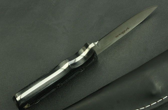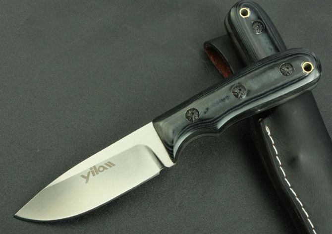 YL—023小直 全 长:200mm 刃 长:90mm 柄 长:103mm 刃 宽:30mm 刃 厚:3.8mm 刃 材:5Cr13Mov 重 量:238g(含包装) 硬 度:57HRC 表 面:拉丝 柄 材:米克塔 锁 型:定锁 其 他:牛皮套
