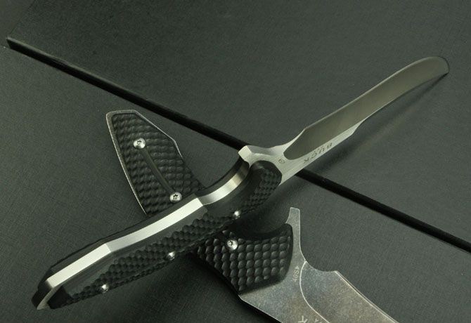 全 长:255mm 刃 长:120mm 柄 长:130mm 刃 宽:36mm 刃 厚:4.8mm 刃 材:5Cr13Mov 重 量:360g(含包装) 硬 度:57HRC 表 面:砂光和石洗 柄 材:黑G10 锁 型:定锁 其 他:配牛皮套+牛皮纸盒