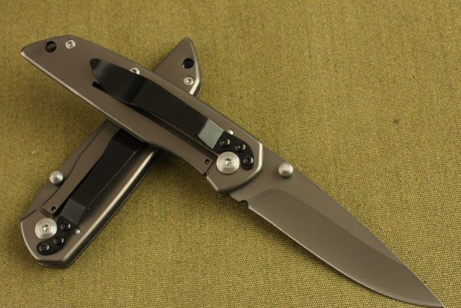 全 长:17.3cm 刃 长:7.7cm 柄 长: 10cm 刃 宽:2cm(最宽处) 刃 厚:2.2mm 刃 材:3Cr13 硬 度:55HRC 重 量: 100克 刀 柄:全钢 表 面:渡钛 锁 定: 线锁