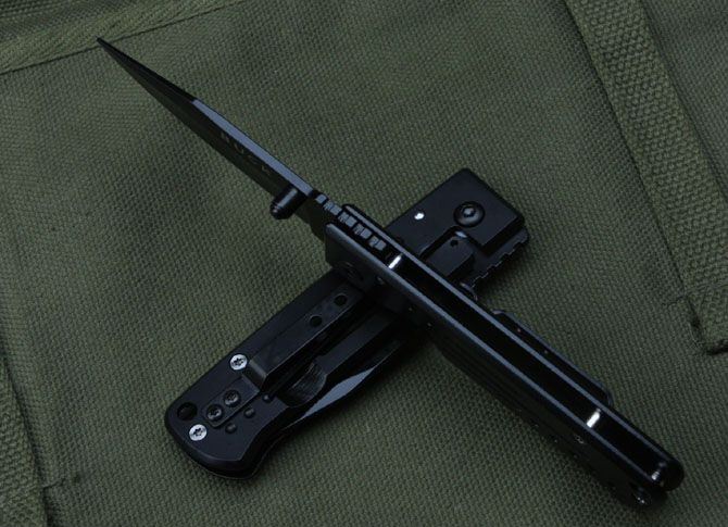 巴克—DA40折刀 全长:15.5cm 刀刃:6.5cm 刃厚:0.22cm 刃宽:1.8cm 柄长:8.5cm 柄材:全钢 材料:3Cr13 硬度:55HRC 净重:80g 锁型:线锁