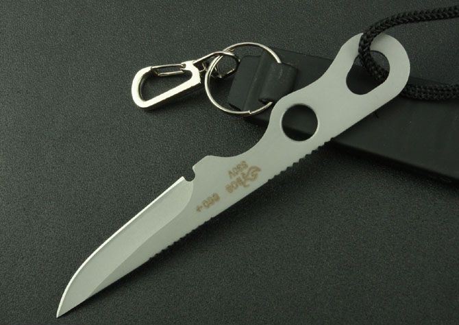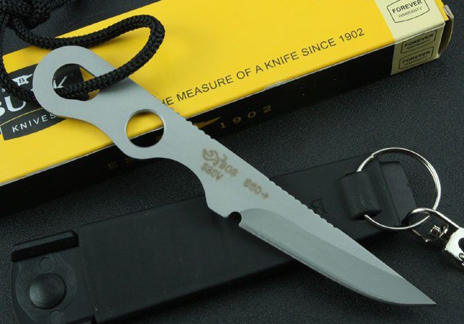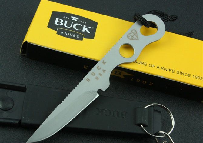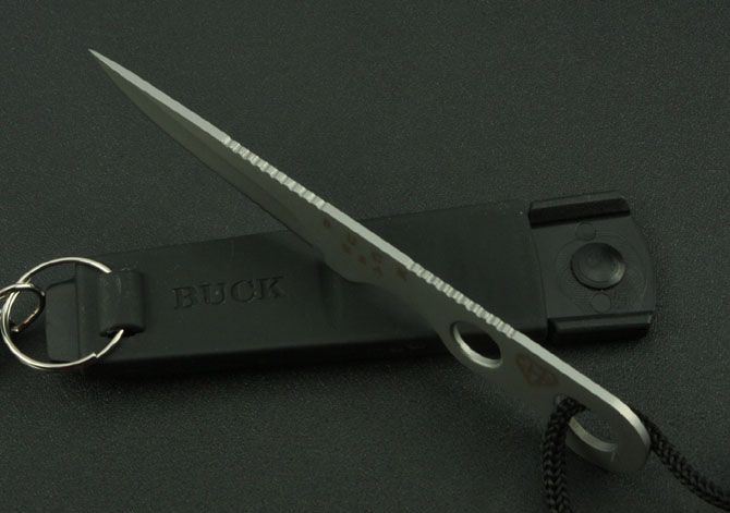 巴克160哨子随身刀(黑白双色) 全 长:130mm 刃 长:55mm 柄 长:70mm 刃 宽:15mm 刃 厚:1.9mm 刃 材:3Cr13Mov 重 量:52g(含包装) 硬 度:55HRC 表 面:氧化黑 柄 材:全钢 锁 型:定锁 其 他:配彩盒+ABS套刀