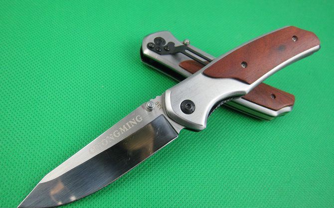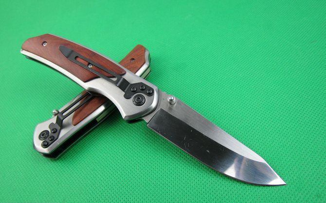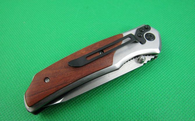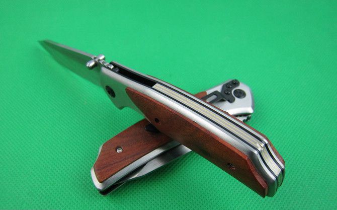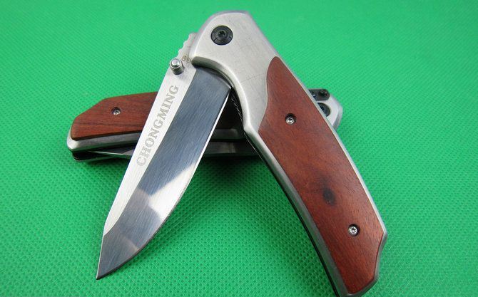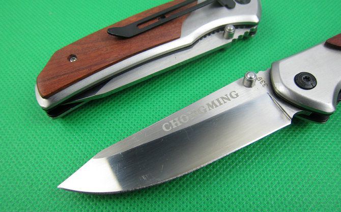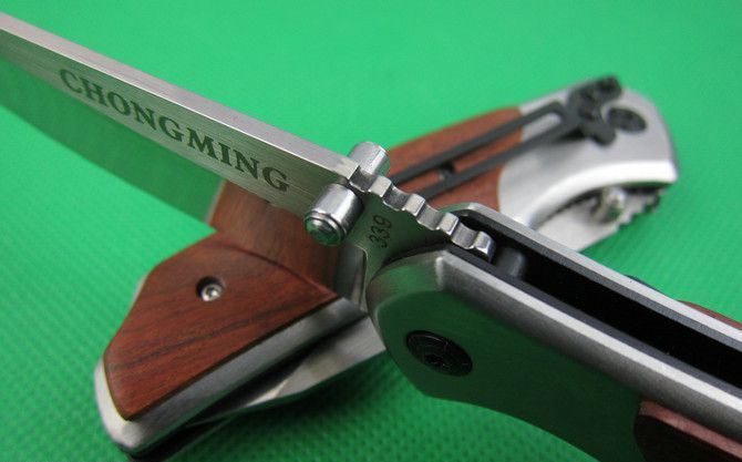 创名全钢A339折刀 全长:20.2cm 刃长:8.8cm 柄长:11.5cm 刃厚:0.27cm 刃宽:2.7cm 刃材:5Cr13 柄材:全钢+木片 硬度:56HRC 净重;190克 锁定;线锁 表面处:丝光伴镜光 其他:原厂彩合