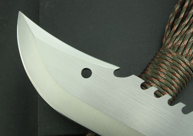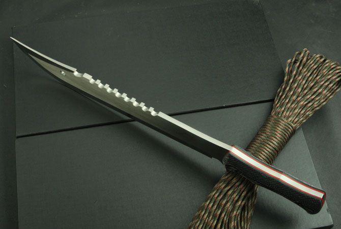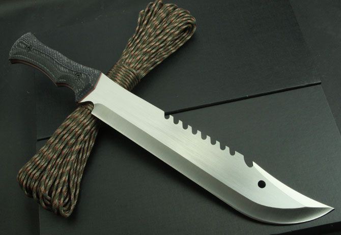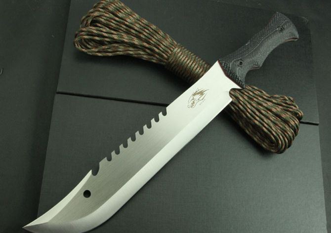 全 长:445mm 刃 长:30mm 柄 长:125mm 刃 宽:60mm 刃 厚:6mm 刃 材:5Cr13Mov 重 量:1080g(含包装) 硬 度:56HRC 表 面:砂光 柄 材:米克塔 锁 型:定锁 其 他:配皮套和纸盒