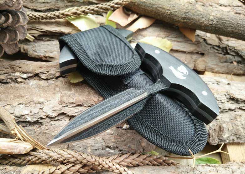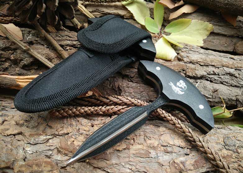 敢死队-三棱手刺 全长:13.2 刃长:7 刃宽:1.7 刃厚:0.2 重量:150g 刃材料:钢 柄材料:黑木 表面:特氟龙粗砂漆 敢死队出口版三棱手刺,黑木柄,三棱刃,敢死队唛头,做工很扎实