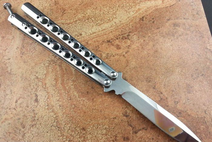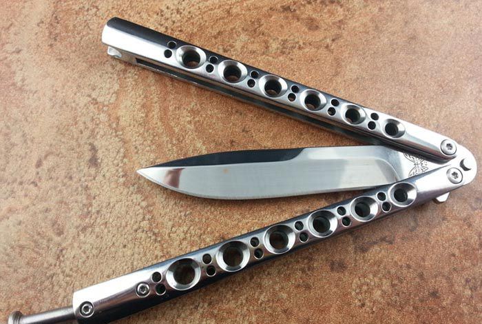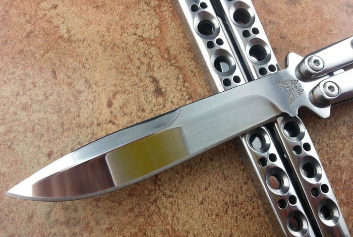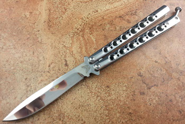 THE ONE 镜面款BM42(440C) 全长:24CM(打开) 刃长:9.5CM 刃厚:0.3CM 刃材料:进口440C 硬度:59-60 重量:150克 刀鞘:刺绣尼龙刀鞘 铸钢柄镂空,压弹出刀 THE ONE 镜面款BM42甩刀,由The one (唯一)精工打造,是现成BM系列精加工特制款式,经典BM42刃,一体柄型,刀刃选用高级440C钢,经精工细作的镜面抛光打造而成,螺丝扣锁都经过严格调配,小批量的精品甩刀