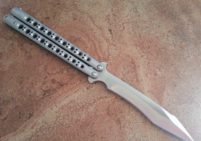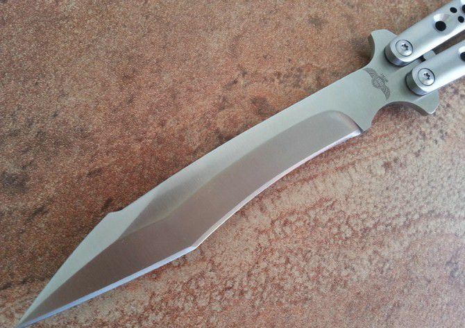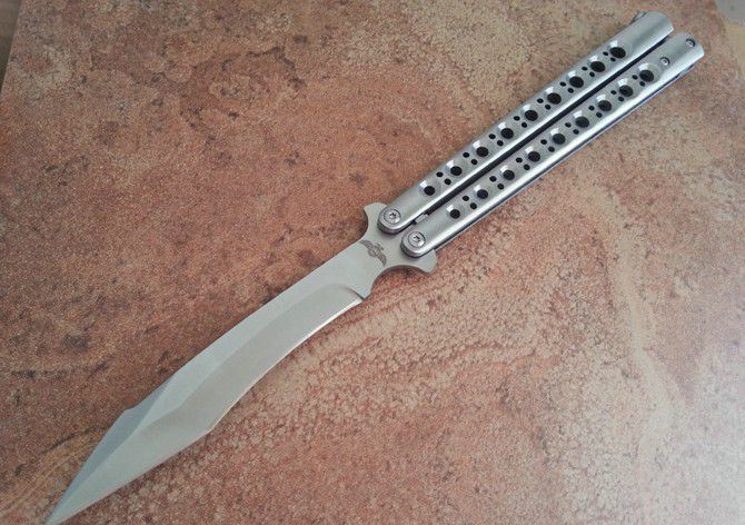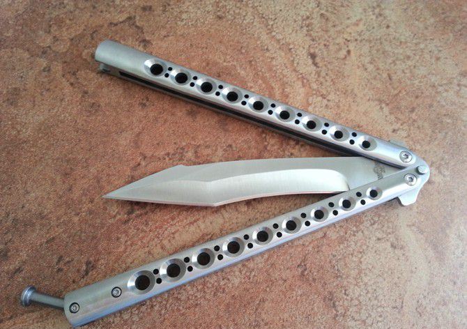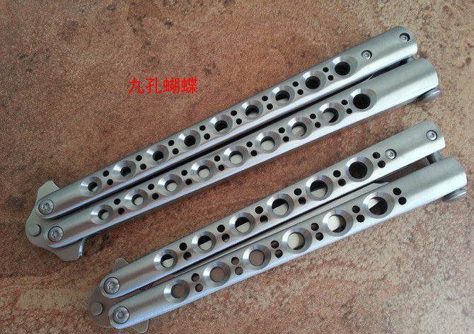 the one九孔猛禽甩刀蝴蝶刀(一体甩柄) 全长:29CM 刃长:13.5CM 刃厚:0.3CM 刃材料:440C 刃硬度:58 柄材料:不锈钢压铸 柄硬度:0 重量:200克 刀鞘:尼龙套 THE ONE 九孔猛禽甩刀,由The one (唯一)精工打造,是现成BM系列变异款式,刃型奇特,如同猛禽的长喙,非常凶悍!29CM超长款式,一体柄型,更坚固和耐摔,转动灵活,由THE ONE 出品,不可多得的精品甩刀!