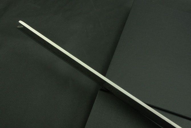 全 长:678mm 刃 长:420mm 柄 长:210mm 刃 宽:47mm 刃 厚:4.2mm 刃 材:5Cr13Mov 重 量:1800g(含包装) 硬 度:57HRC 表 面:腐蚀 柄 材:铜头+兽骨+铜片+皮片 锁 型:定锁 其 他:配牛手工皮套