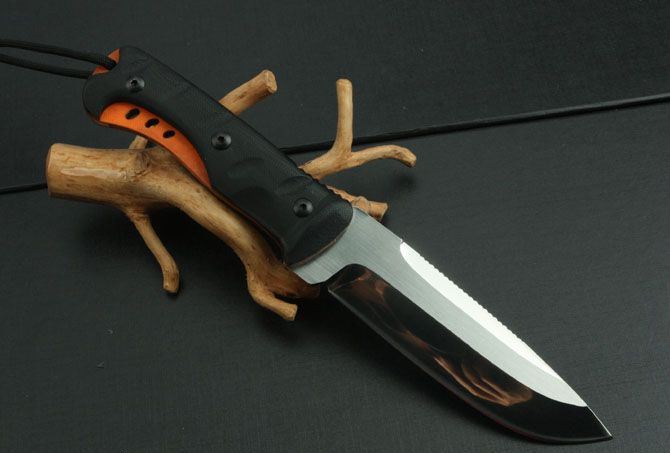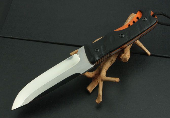 全 长:255mm 刃 长:120mm 柄 长:120mm 刃 宽:35mm 刃 厚:4.8mm 刃 材:5Cr13 重 量:370g(含皮套) 硬 度:57HRC 表 面:镜光+砂光 柄 材:双色G10 锁 型:定锁 其 他:配白盒和K鞘
