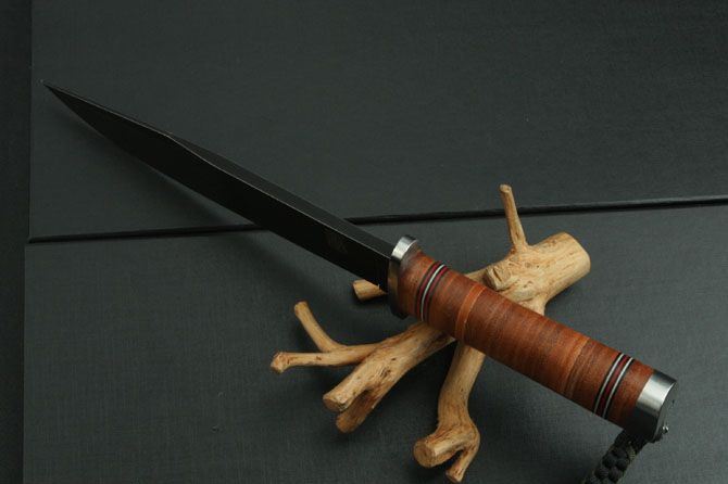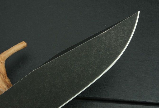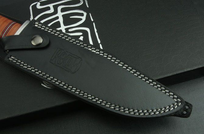 小鲁工战神奥丁博依刀 全长:323mm 刃长:200mm 厚度:6.5mm 刃宽:3.8cm 钢材:D2 硬度:59-60.5HRC 净重:410克 毛总:950克 柄材:天然压缩牛皮缠绕 附件:刀鞘天然牛品压花+礼品包装合 开刃方式:大平磨,2次开刃 刃面处理:钢本 沧桑版 小鲁工的战神奥丁每把都是一体全龙骨,使刀刃和刀柄浑然一体,绝不吝啬原料来损害刀的坚固和力度。