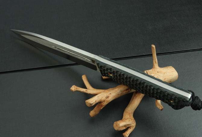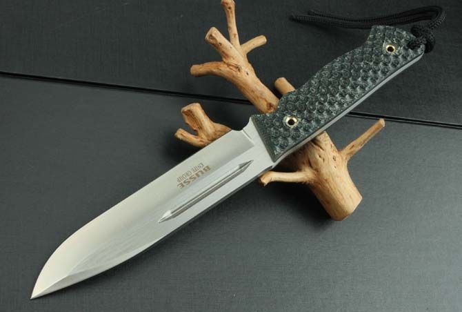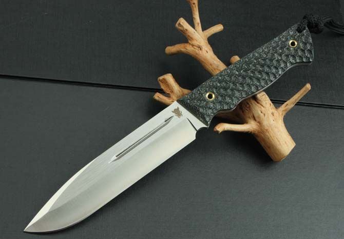 全 长:280mm 刃 长:155mm 柄 长:125mm 刃 宽:33mm 刃 厚:5.5mm 刃 材:5Cr13Mov 重 量:430g(含包装) 硬 度:58HRC 表 面:砂光 柄 材:G10 锁 型:定锁 其 他:配牛皮纸盒和皮套