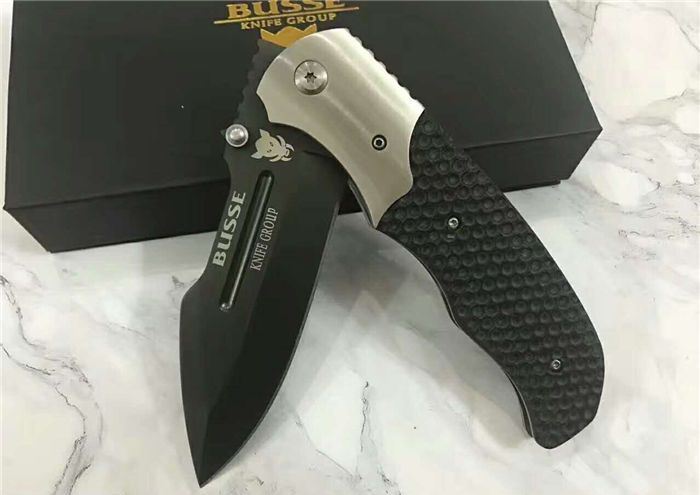 山猪-入侵者折刀 全 长:25cm 刃 长:11.2cm 柄 长:13.8cm 刃 宽:3.7cm(最宽处) 刃 厚:3.7mm 刃 材:D2高速钢 硬 度:60-62HRC 刀 柄:白钢头+G10板 表 面:镀钛 锁定方式:侧锁 重 量:220克 备 注:配礼品盒和出世纸