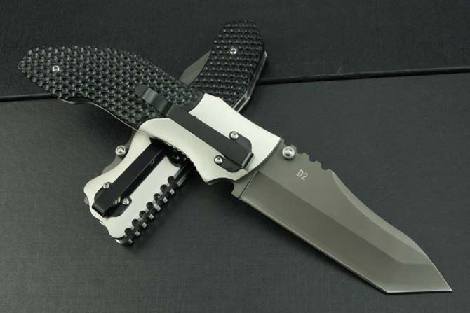 全 长:236mm 刃 长:104mm 柄 长:136mm 刃 宽:35mm 刃 厚:3.9mm 刃 材:D2 重 量:360g(含包装) 硬 度:59HRC 表 面:镀钛 柄 材:黑G10+钢头 锁 型:线锁 其 他:黑色硬纸盒