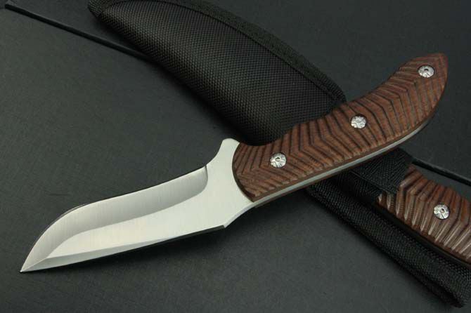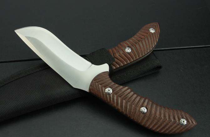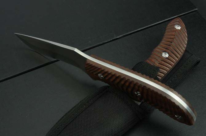 KT041沙漠风尘 全 长:233mm 刃 长:100mm 柄 长:123mm 刃 宽:32mm 刃 厚:3.8mm 刃 材:5Cr13 重 量:253g(含包装) 硬 度:57HRC 表 面:砂光 柄 材:檀木柄 锁 型:定锁 其 他:配尼龙套