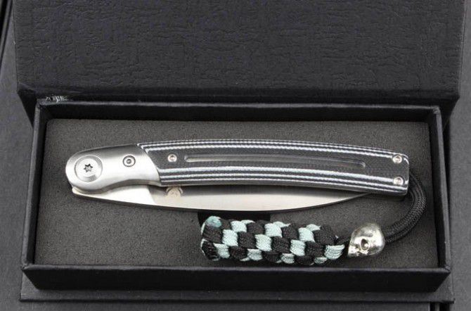 全 长:206mm 刃 长:96mm 柄 长:110mm 刃 宽:16mm 刃 厚:4.0mm 刃 材: 8Cr18Mov 重 量:152g (含包装) 硬 度:61-62HRC 表 面:拉丝 柄 材:米克塔 其 他:纸盒包装
