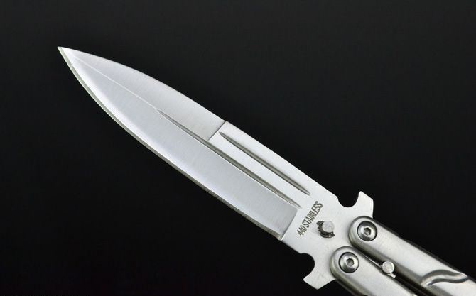 IN-9B2甩刀(黑、白) 全 长:22.5cm 刃 长:10cm 柄 长:12.3cm 刃 宽:2.2cm(最宽处) 刃 厚:2.5mm 刃 材:420 硬 度:53HRC 刀 柄:钢柄(黑/白) 表 面:砂光/发黑 重 量:179克(含包装) 包 装:纸盒、尼龙套。