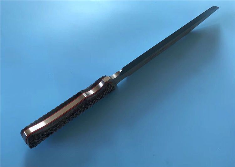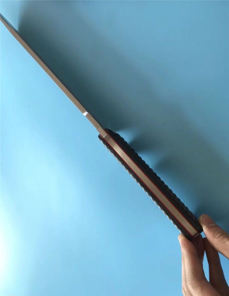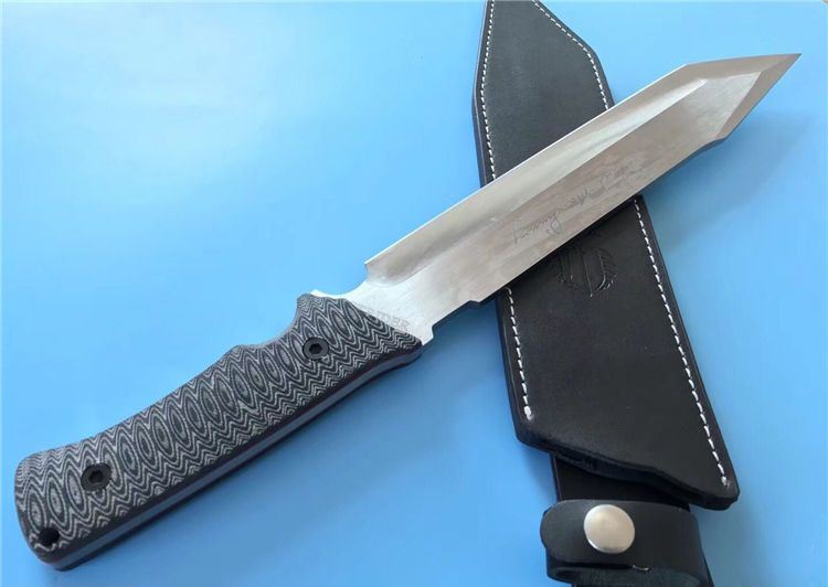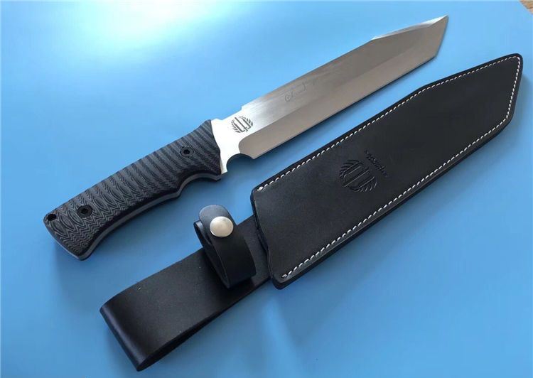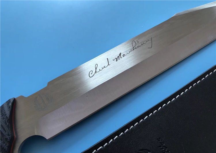 米克手签版长刀4号 全 长:422mm 刃 长:270mm 柄 长:142mm 刃 宽:50mm 刃 厚:6.2mm 刃 材:7Cr17Mov 重 量:1220g(含包装) 硬 度:57HRC 表 面:拉丝 柄 材:G10 锁 型:定锁 其 他:配牛皮套和木盒