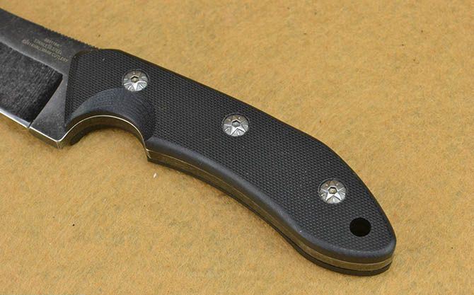 全 长:18cm 刃 长:6.5cm 柄 长:11.5cm 刃 宽:3.5cm 刃 厚:4.8mm 刃 材:7Cr17Mov 重 量:313g(含包装) 硬 度:58-60HRC 表 面:沧桑黑石洗 柄 材:G10 刀 鞘:K鞘