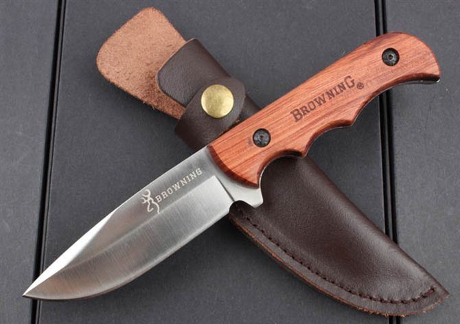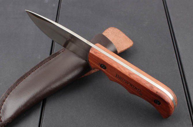 勃朗宁角斗士小直刀 全 长:210mm 刃 长:100mm 柄 长:110mm 刃 宽:29mm 刃 厚:4.5mm 刃 材:3Cr13 重 量:199g(含包装) 硬 度:56HRC 表 面:砂光 柄 材:木柄 锁 型:定锁