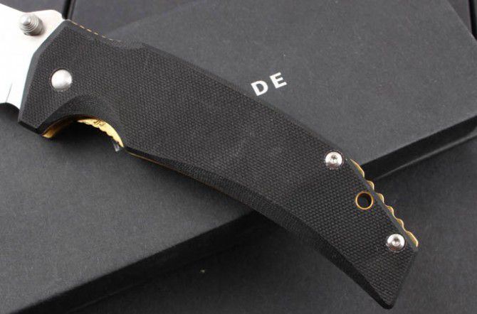 蝴蝶-E333折刀 全 长:223mm 刃 长:99mm 柄 长:125mm 刃 宽:29mm 刃 厚:3mm 刃 材:7Cr17Mov 重 量:271g(含包装) 硬 度:58HRC 表 面:镜光 柄 材:钛全柄+碳纤 锁 型:线锁 其 他:配硬纸盒