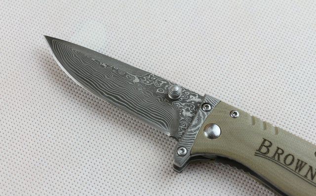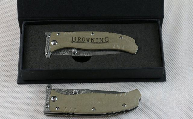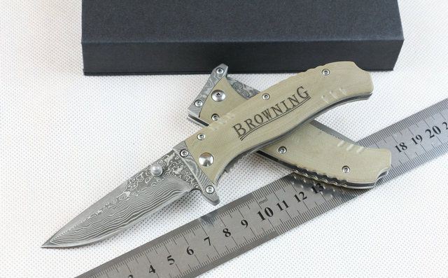 勃朗宁F107大马士革折刀 全 长:178mm 刃 长:75mm 柄 长:102mm 刃 宽:22mm 刃 厚:3.0mm 刃 材:大马士革 重 量:160g (含包装) 硬 度:58-60HRC 表 面:波浪纹 柄 材:手柄电脑椤成型G10手柄、再镶大马士革钢头,造型非常漂亮 锁 型:线锁。 螺 丝:所有螺丝420不锈钢硬度HRC45。 结 构:一体线锁。 其 它;礼品盒包装