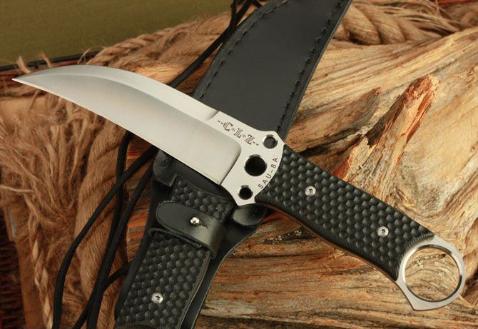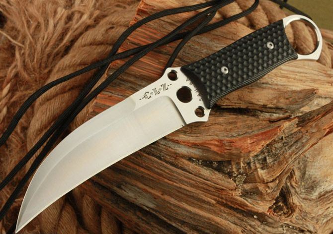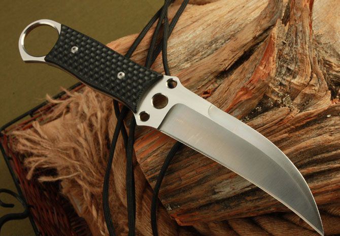 蜂窝爪 全 长: 25.5cm 刃 长: 15cm 刃 宽: 3.5cm (最宽处) 刃 材: AUS-8A 硬 度: 58HRC 刃 厚: 0.49cm 柄 长: 11cm 柄 材: 黑G10 表 面: 砂光 重 量:305克(含鞘)