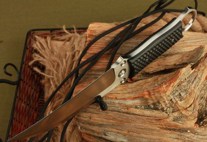 全 长: 25.5cm 刃 长: 15cm 刃 宽: 3.5cm (最宽处) 刃 材: AUS-8A 硬 度: 58HRC 刃 厚: 0.49cm 柄 长: 11cm 柄 材: 黑G10 表 面: 砂光 重 量:305克(含鞘)