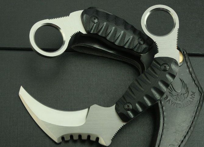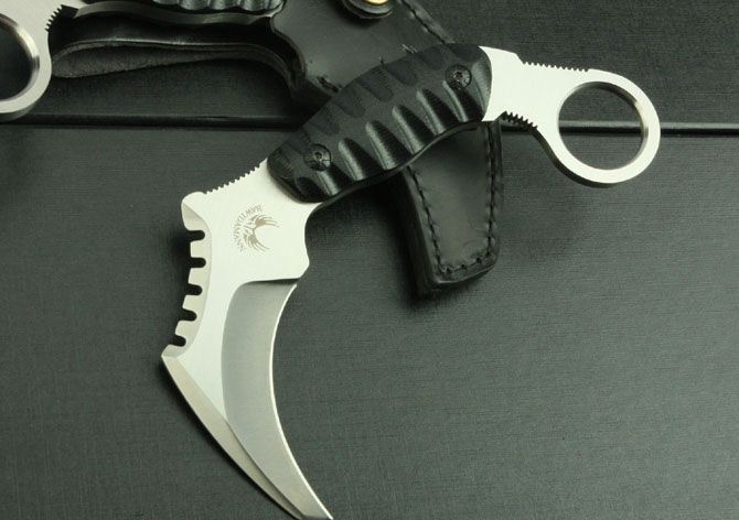 末日爪刀 全 长:167mm 刃 长:68mm 柄 长:120mm 刃 宽:30mm 刃 厚:5mm 刃 材:5Cr13 重 量:235g(含包装) 硬 度:57HRC 表 面:砂光 柄 材:黑G10 锁 型:线锁 其 他:配皮套