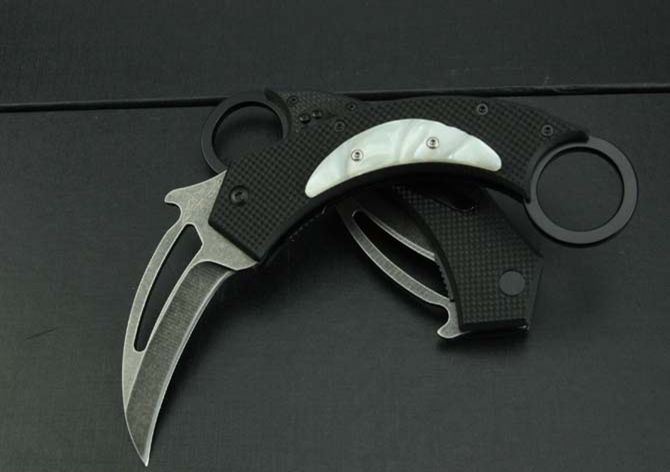 月亮弯爪子 全 长:175mm 刃 长:65mm 柄 长:135mm 刃 宽:27mm 刃 厚:2.7mm 刃 材:5Cr13 重 量:140g(含包装) 硬 度:56HRC 表 面:石洗 柄 材:G10 锁 型:线锁 其 他:彩盒