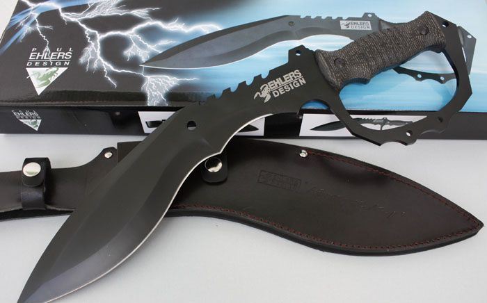 蝎子巨无霸砍刀 全长:46.6cm 刃长:29cm 刃宽:6.5cm 刃厚:0.52cm 刃材:440C高级不锈钢 硬度:57HRC 表面:电泳处理(防锈硬度高) 柄材:玻纤亚麻高压复合材料 柄长:13.8cm 品质:高品质,刃口非常锋利 附件:专用战术真皮刀套和彩合