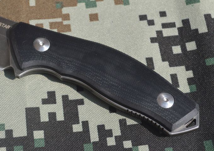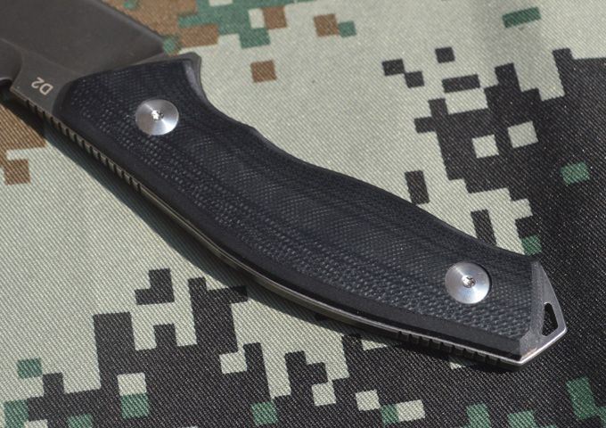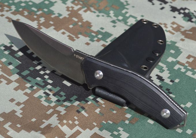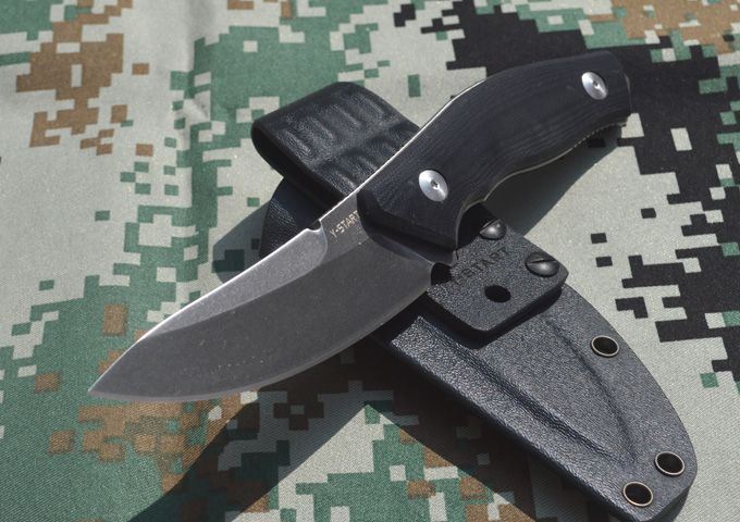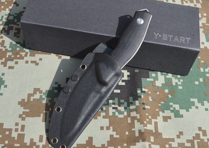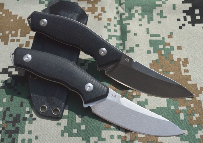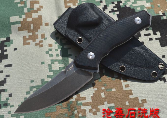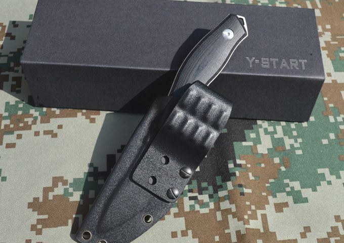 全长:224.5mm 刃长:99mm 刃厚:4.0mm 刃宽: 33mm 刃材: D2 柄材: 黑色G10 硬度: 58-60HRC 表面处理:石洗/沧桑石洗; 刀套:K鞘(进口K板) 包装:黑色礼品盒包装