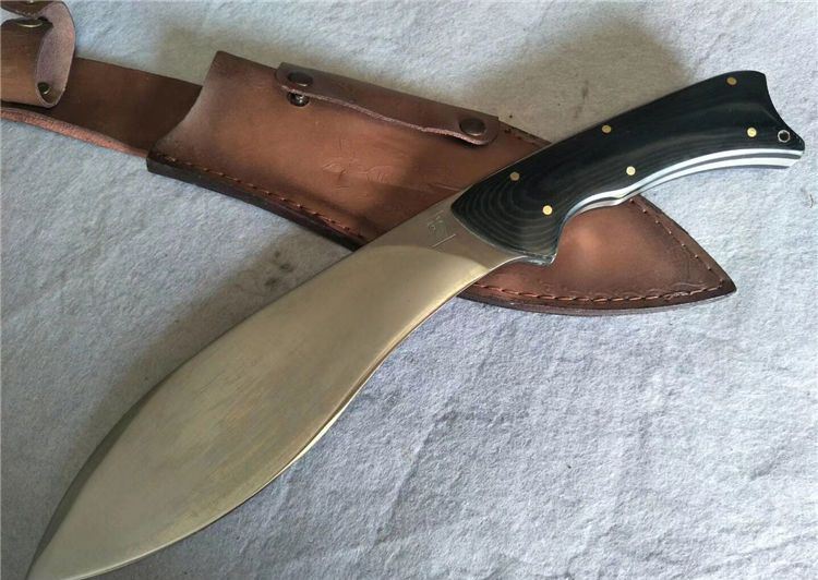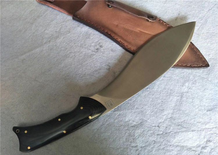 全长:39.5cm 刃长:24cm 刃宽:6.5cm 刃厚:0.75cm(超厚) 刃材:4Cr14Mov高级不锈钢 硬度:57HRC 表面:丝光 柄材:米卡塔 柄长:15.7cm 结构:龙骨构造,刀身贯穿刀柄,铜钉固定,非常牢固。 净重:860克 毛重:970克 刀鞘:真皮压花刀套 其它:刃口锋利。