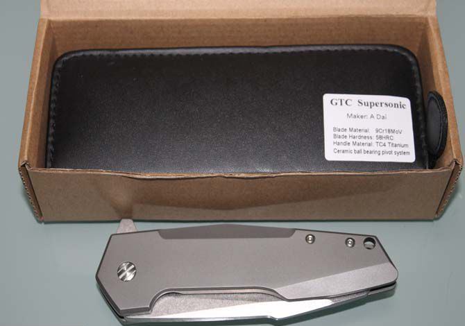 正品GTC-超音速折刀(刃石洗柄钛版) 全 长: 22.5cm 刃 长: 9.5cm 刃 宽: 2.9cm(最宽处) 闭 合: 13cm 硬 度: 58HRC 刃 厚: 0.45cm 重 量: 200克 表 面: 石洗+镀钛 刃 材: 9Cr18Mov 柄 材: 钛合金 锁 闭: 线锁 其 他: 刃口锋利,配高档皮革套