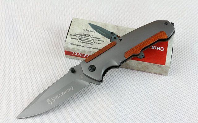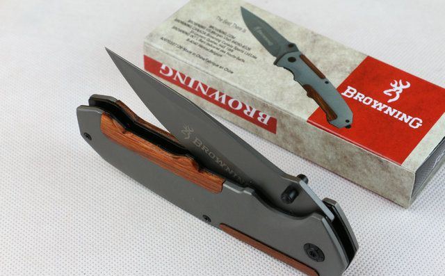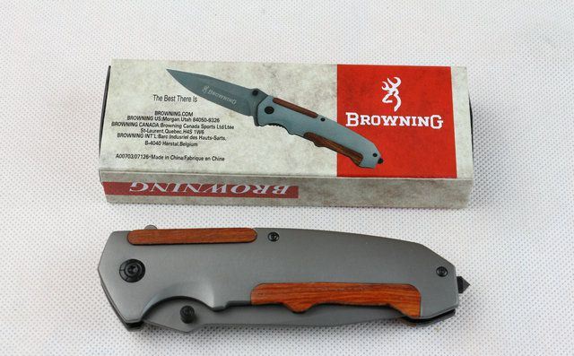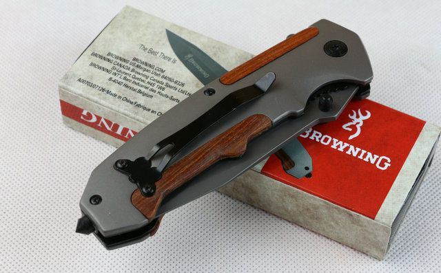 勃朗宁F67快开折刀 全 长:230mm 刃 长:92mm 柄 长:133mm 刃 宽:30mm 刃 厚:2.8mm 刃 材:440C 重 量:260g (含包装) 硬 度:54-58HRC 表 面:镀钛 柄 材:全钢镶红花梨木 锁 型:线锁。 其 它;原厂包装.内置撞击玻璃器。