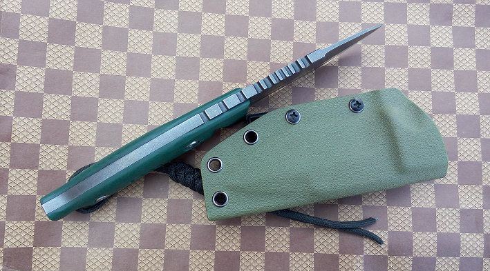Dwaine Carrillo(以下简称DC)从1998年开始做刀,他最开始做一些狩猎用刀,后来逐渐转化为制作生存用的战术刀和最专业的户外用刀。DC从做刀之刻起就给自己定了一个目标,就是DC的刀具除了刀子本身外,他的刀鞘也应该具有相当的实用性。DC谈到,他从小就喜欢刀具,他见过很多很多漂亮的刀子,也见过很多出名的刀匠,但是他们的作品往往忽略刀鞘的制作,DC的东西之所以受欢迎是因为能够比工业生产的东西更具有吸引力,因为他投入了比很多人都多的时间来研究制作他们认为不重要的刀鞘,DC的刀鞘和他的刀一样坚固耐。在制作了5年的直刀后,DC从2003年开始做折刀,他的折刀也延续了他直刀的一贯风格:战术、凶悍、坚固