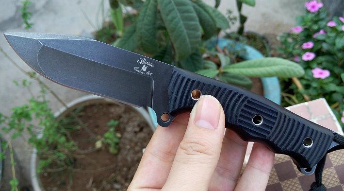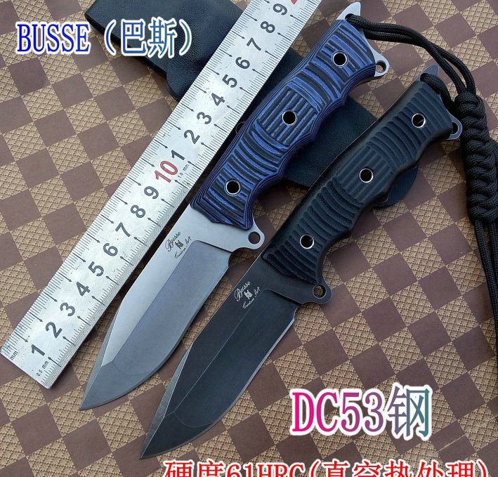 巴斯-惩戒者小直刀 材质:DC53 全长:21.2cm 刃长:8.5cm 刃厚:0.5cm 刃宽: 3cm 重量: 230克 表面:石洗和沧桑石洗 硬度:61HRC(真空热处理) 手柄:G10,CNC 成型 刀鞘:战术K鞘(进口Kydex板)