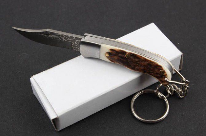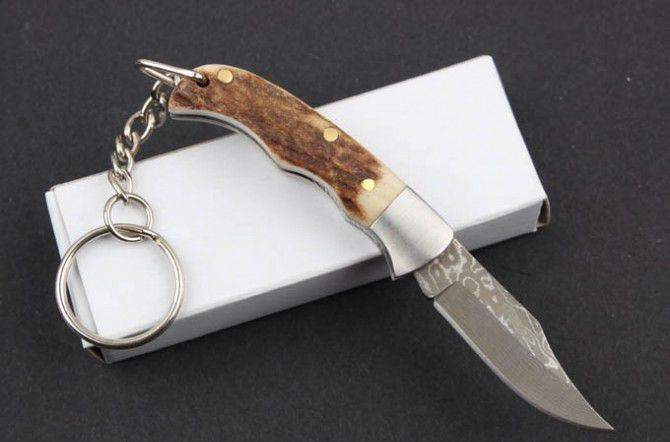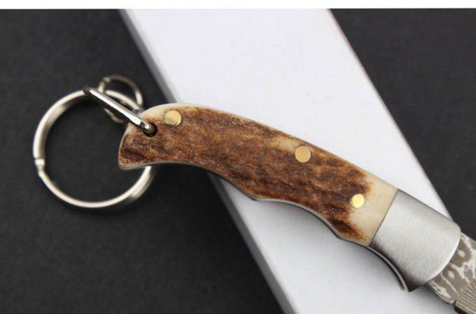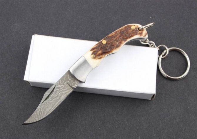 鹿角柄大马士革-迷你匙扣刀