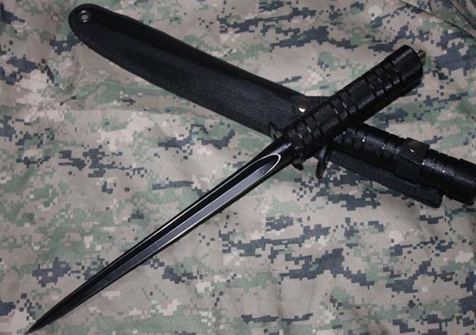 全 长:38CM 刃 长: 24CM 柄 长:14CM 管 径: 2.5CM 重 量: 530g(含包装) 硬 度: 55HRC