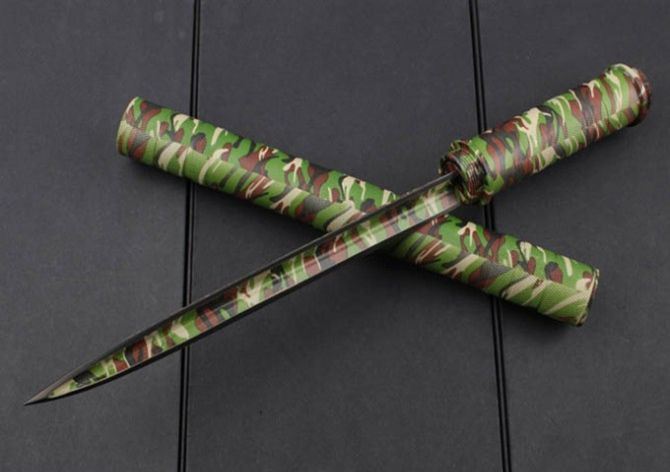 著名刀具公司--United联合刀具公司出品的畅销全球警界的防暴棍刺。本品外型似短棍,手柄拧开后可以抽出一把狭长的棍刺。棍身实质为刀鞘,把鞘拧开后与刀柄可以合成一体,成为一把外型类似日本刺的棍刺。刀身由440高级不锈钢制成,刀柄中空。 全金属刀柄和棍管经数控加工,刻有滚花网纹,增加手感摩擦力以及防滑。刀柄和刀鞘正面结合起来就是一根全金属警棍,击打有力。 反面结合刀鞘是一只长达75cm的长刀,适合长距离远攻,可配挂各种腰带,手柄末端钻有孔,使用者可以自行穿一条防抢绳。 此刀是难得的格斗、防身利器,设计非常精巧,材质全为优质精钢,绝对是一款超值的好刀。