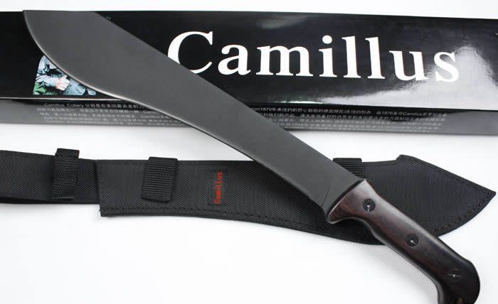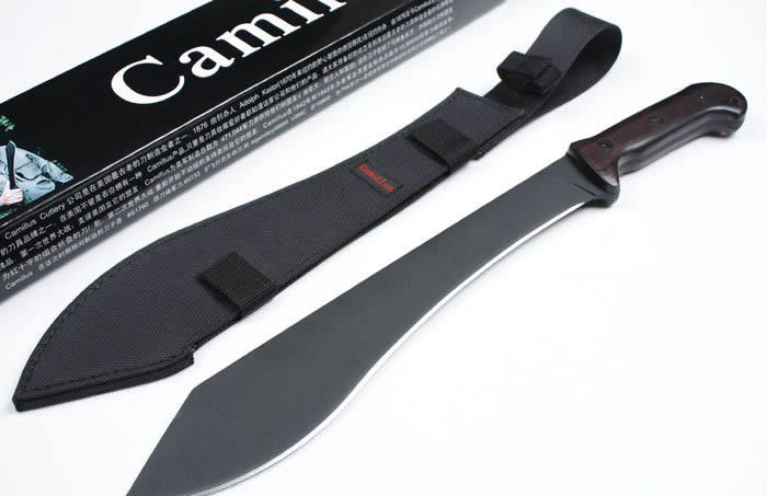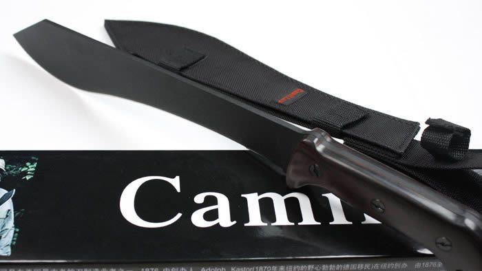 美国CamiLLus CAM-BK6丛林刀(黑版) 全 长: 49cm 刃 长: 34cm 刃 厚: 5mm 刃 材: 420A 硬 度: 57HRC 表 面: 喷黑砂 柄 材: 胶柄 刀 鞘: 尼龙