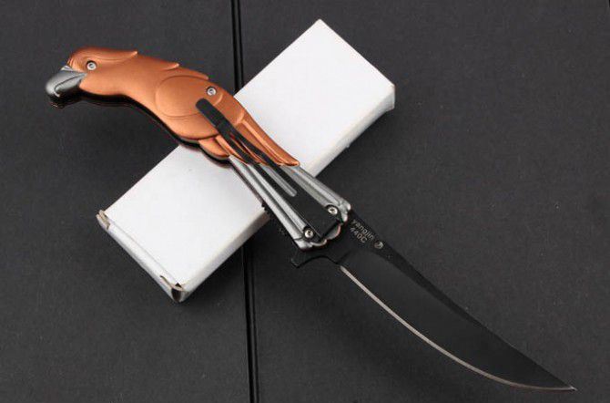 金刚鹦鹉折刀 全 长:234cm 刃 长:10.5cm 柄 长:13cm 刃 厚:0.28cm 刃 材:3Cr13 柄 材:铝 硬 度:58HRC 表 面:氧化黑 重 量:143g 锁 定: 侧 锁