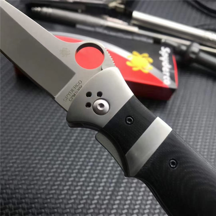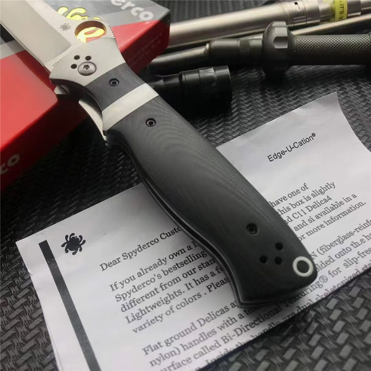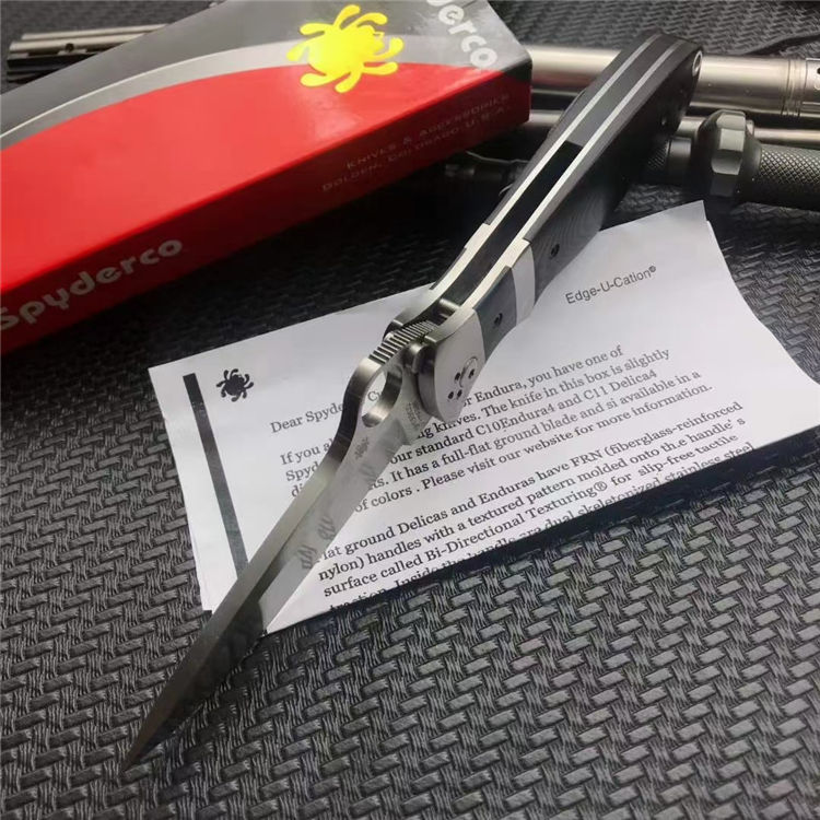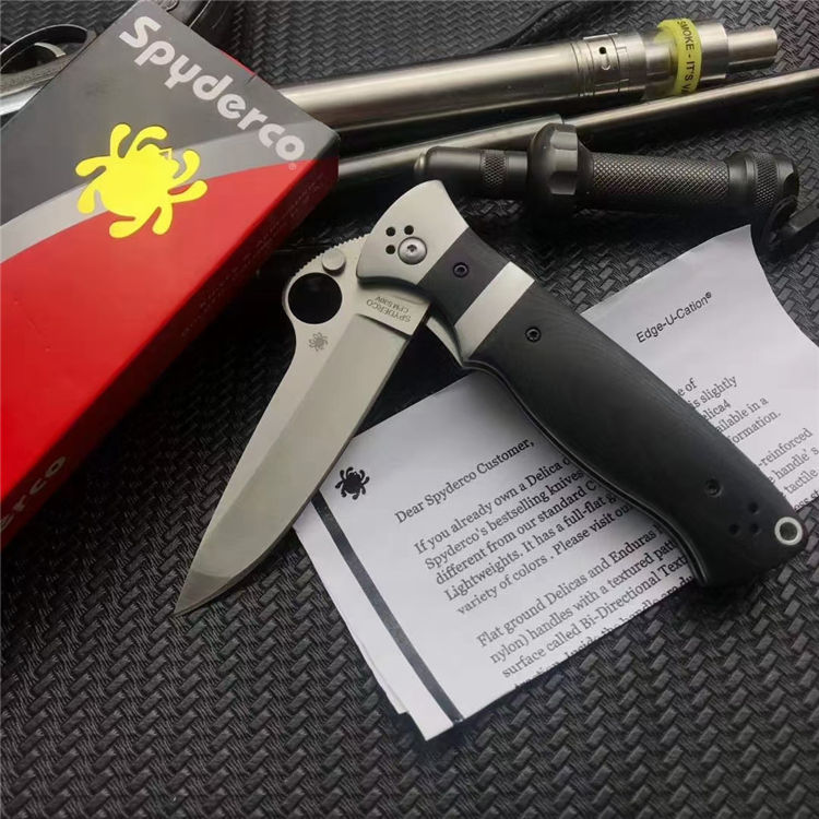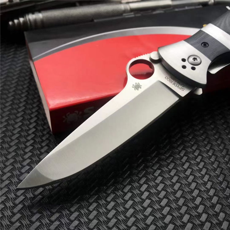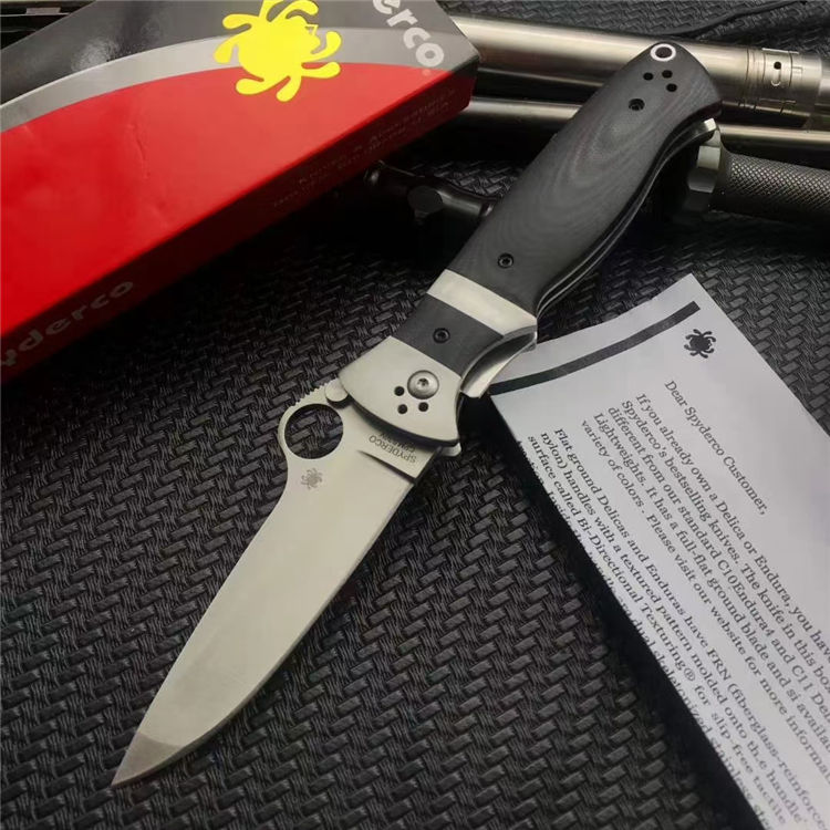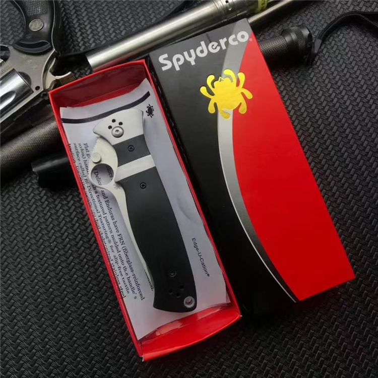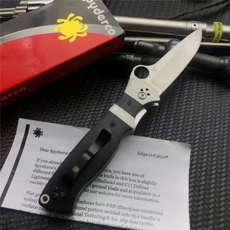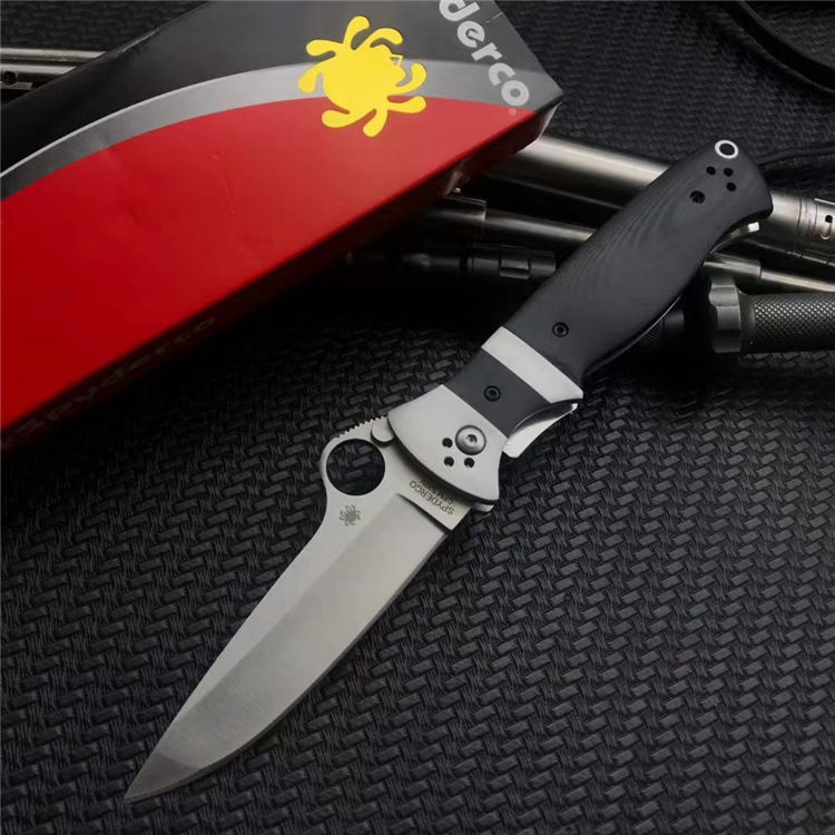 蜘蛛C149GP折刀 全 长:220mm 刃 长:95mm 柄 长:120mm 刃 宽:35mm 刃 厚:4.0mm 刃 材:5Cr13Mov 重 量:215g(含包装) 硬 度:57HRC 表 面:砂光 柄 材:G10 +配以双钢衬 锁 型:线锁 其 他:配彩盒