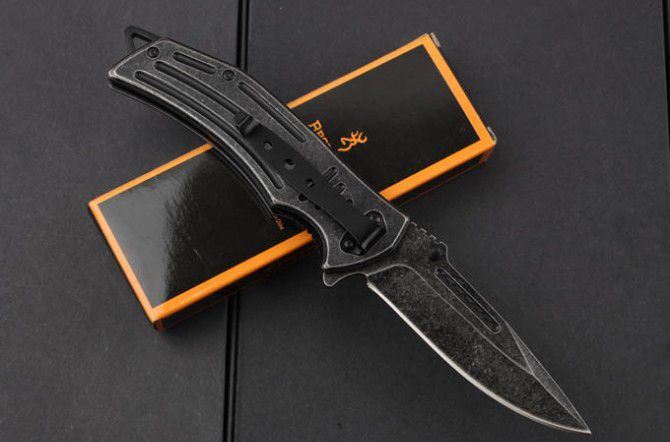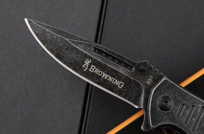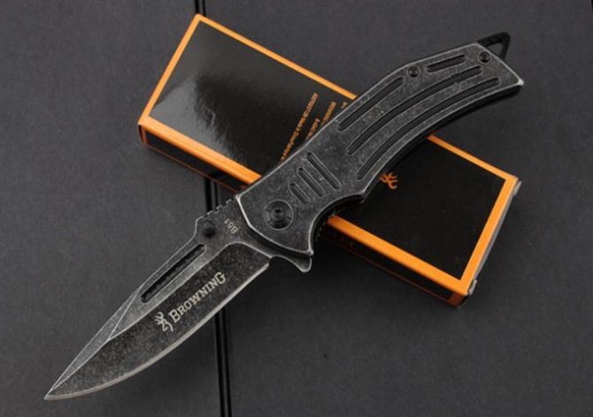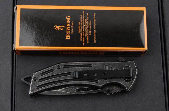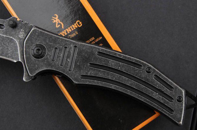 勃朗宁—B51快开折刀 全 长:205mm 刃 长:90mm 柄 长:117mm 刃 宽:30mm 刃 厚:2.9mm 刃 材:3Cr13Mov 重 量:209g(含包装) 硬 度:55HRC 表 面:石洗 柄 材:钢柄 锁 型:快开 其 他:配彩盒
