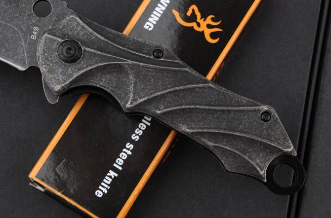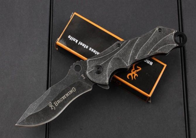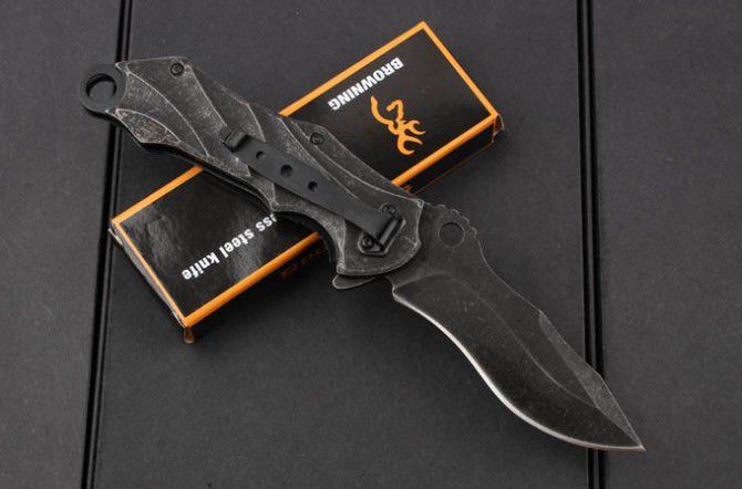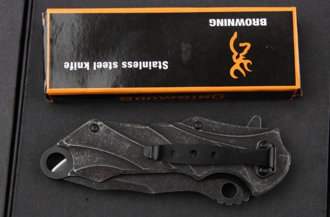 勃朗宁—B49快开折刀 全 长:220mm 刃 长:85mm 柄 长:125mm 刃 宽:30mm 刃 厚:2.9mm 刃 材:3Cr13Mov 重 量:215g(含包装) 硬 度:55HRC 表 面:石洗 柄 材:钢柄 锁 型:快开 其 他:配彩盒
